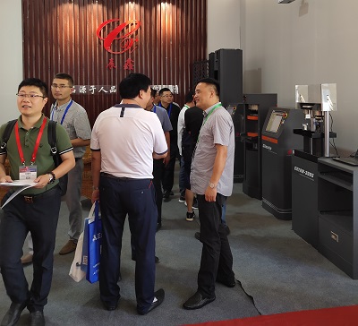 大会结束之后,就正式拉开了展览会的帷幕。在2019中国(绍兴)智慧测试及检验检测展览会中,我公司这次带去了三台试验机,分别是CXWAW-1000S型电液伺服万能材料试验机,CXYAW-2000SX型微机控制压力试验机以及CXYAW-300S型微机控制压力试验机。同时我们还带去了最新的技术,伺服泵控技术和恒速节流技术。经过公司精心准备,凭借精湛的技术水准,吸引了众多参会代表与采购商的驻足观看与咨询洽谈,都赢得了参会代表与采购商的关注和好评,取得圆满成功!