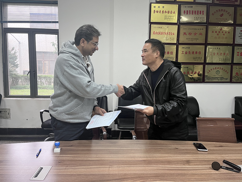 11月18日,来自印度的客户不远万里来到我司进行实地深入考察,董事长阮伟鑫和销售副总李建明亲自接待陪同。在参观过程中,印度客户表现出了极大的兴趣和认真态度,他们仔细参观了我司的车间和展示厅,详细了解了产品的生产流程、技术工艺等核心技术问题。
