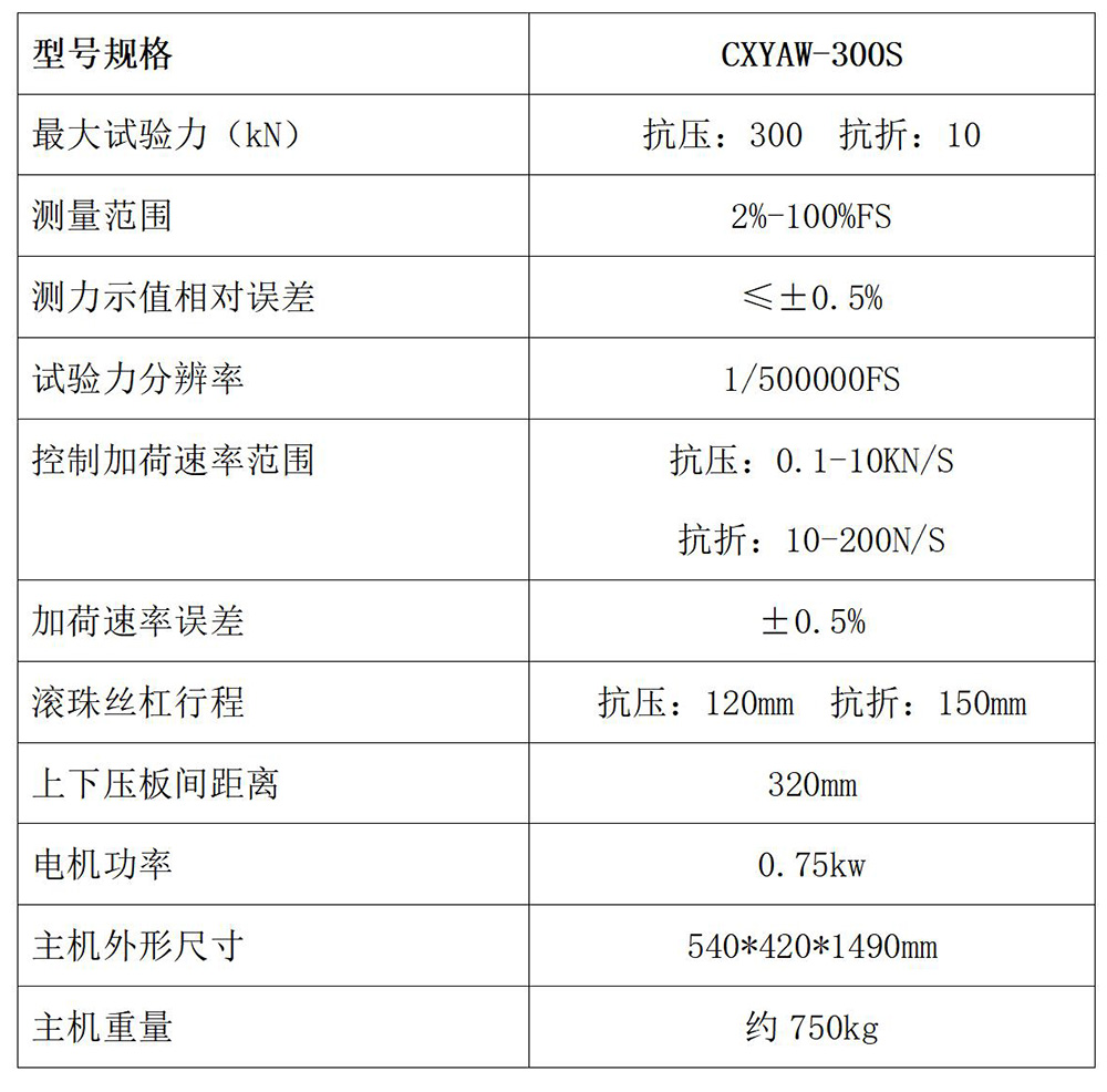 6. 试验机选用双精密滚珠丝杠,高精度伺服电机驱动作为300KN和10KN抗压控制动力和控制单元,实现双工位同时工作。