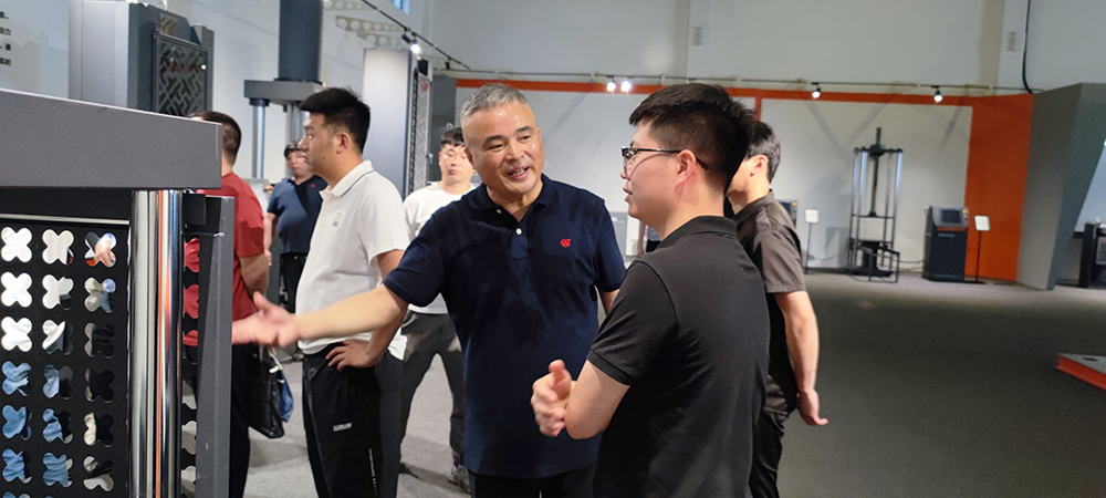除了课堂知识,学员们在董事长阮伟鑫的带领下实地参观了我公司厂区、乐鱼在线登录 - 乐鱼(中国)厅,充分了解了试验机的生产过程与零部件制造工序。参观过程中,学员们对我公司新研发的一体化智能砼试验成套装备、智能钢筋重量偏差标距仪等智能化设备非常感兴趣,通过现场演示和讲解,对我公司研发实力、技术力量给予了充分的肯定和赞扬。